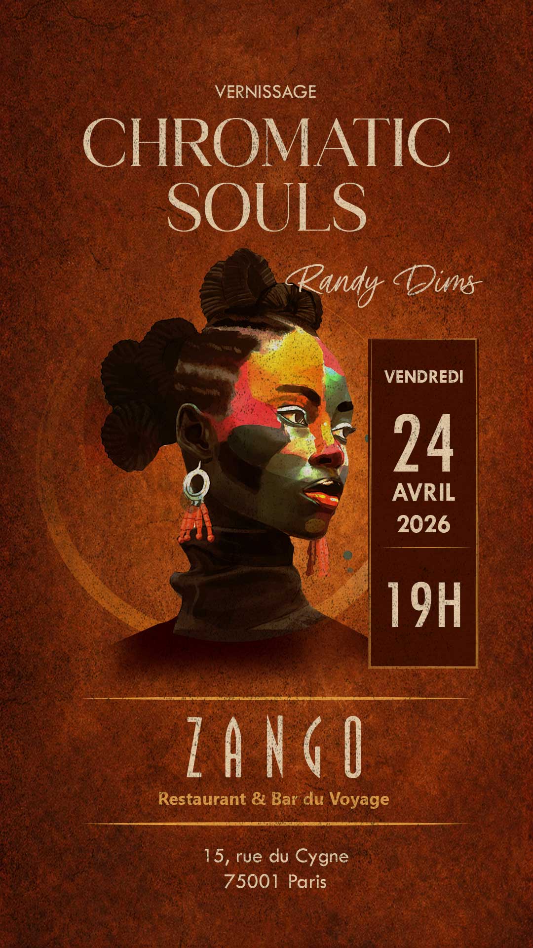 Le vernissage aura lieu le vendredi 24 avril 2026 à partir de 19h au Zango – Restaurant & Bar du Voyage, un lieu chaleureux et immersif mêlant cuisine, ambiance et voyage.